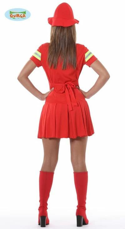 Dit brandweervrouw jurkje is rood en heeft reflecterende gele details. Bij het jurkje zit een hoed met daarop de tekst “Fire rescue”. In dit kostuum help jij iedereen uit de brand!
