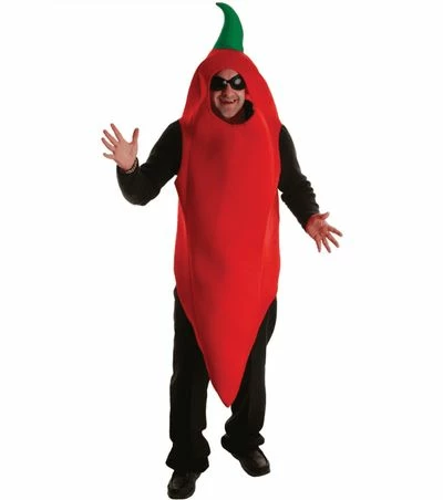 - Het chilipeper kostuum is een simpel instap model en past vrijwel iedereen.