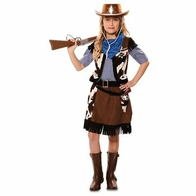 - Cowgirl kostuum – meisje bestaat uit een shirt met gilet, rok, riem en bandana