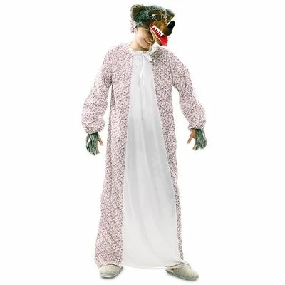 - Dit Grote boze wolf pak komt met jurk, slaapmuts, wolvenkop en handschoenen.