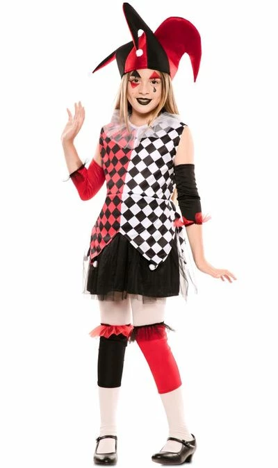 - Harlekijn kostuum kind bestaat uit een jurkje, beenwarmers, polsbanden en muts