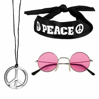 Deze hippie set is perfect voor een onvergetelijk jaren 60/70 hippie feest! De hippie set maakt je outfit helemaal af. Overtuig iedereen met je good vibes en dans je helemaal crazy met deze blije hippie set!
