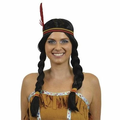 Eigenschappen Indiaanse pruik met vlechtjes zwart