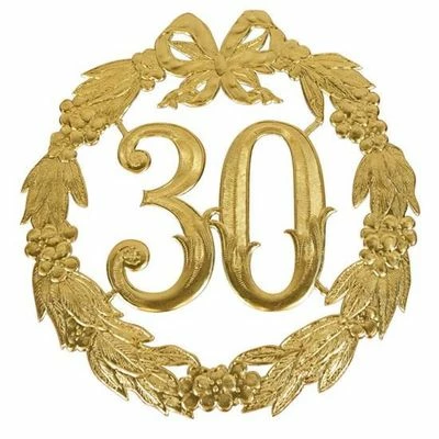 - Het jubileumcijfer 30 is een decoratie schild van glanzend goud karton