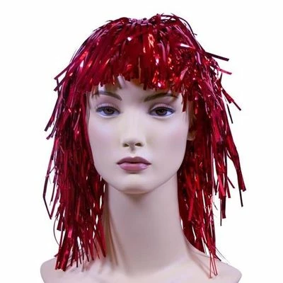 - De Lametta pruik deluxe rood valt op schouderlengte