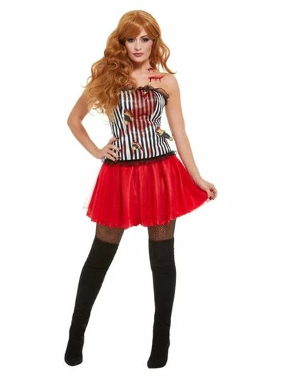 Jij durft wel met het Messenwerper kostuum dames. Aan jou de grote eer om messen te gooien naar diegene in het Messenwerper kostuum dames. Wat wil je nog meer?! Jullie zorgen samen wel voor een leuke show tijdens het feest waar je naar toe gaat. Het circus messenwerper kostuum is een leuke showsteler voor een circus feestje!