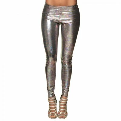 Wow! Wat komt daar nou voorbij?! Het is de Metallic legging holografisch! Met deze Metallic legging holografisch maak jij de blits op ieder feest! Ga je als kerstster? Als kerstbal? Als disco bal? Als jaren 80 disco diamant? Als jaren 90 held? Of kom je uit Space gezoefd? Dan is deze Metallic leggingholografischilver he-le-maal waanzinnig! Deze Metallic legging holografisch is voor vele themafeesten of carnavalsfeesten geschikt!