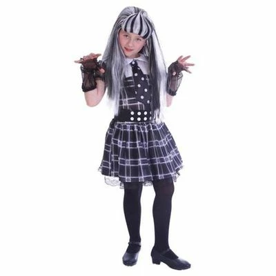 Met dit Monster High jurkje maak jij van de cartoonserie realiteit! Ga als griezelige coole leerling Frankie Stein verkleed met dit Monster High jurkje! Maak je Frankie Stein outfit compleet door een zwart-witte pruik erbij te doen. We hebben hiervoor een zwarte pruik met al 2 witte plukken of ga zelf aan de knutsel en maak zwarte haarstroken in 1 van onze witte pruiken! Zie het als een blokkuur monster knutselles op Monster High, hoe leuk! Met dit monster high jurkje voel jij je dus gelijk als een echte leerling vol monsterachtige avonturen!