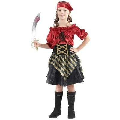- Het piraten kinder kostuum bestaat uit een shirt, rok met schort, riem en bandana