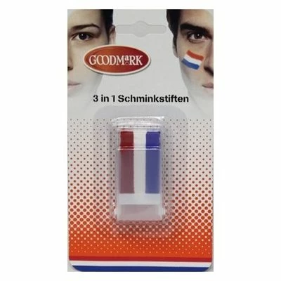 Onze rood wit blauw schmink luxe kun je eigenlijk niet missen op Koningsdag. Hartstikke makkelijk aan te brengen en al jouw vrienden hebben er ook nog eens plezier van! Binnen no time hebben al jouw vrienden een Nederlandse vlag op hun wang. Ook leuk voor als je een oranje of landen themafeestje hebt. Eigenlijk komt deze schmink stick altijd wel van pas! Met onze rood wit blauw schmink luxe kun tot bijna 100 vlaggetjes tekenen. Let daarbij wel op dat u de schminkstift niet te hard aandrukt, want hoe harder u drukt hoe meer schmink u verbruikt per vlaggetje.