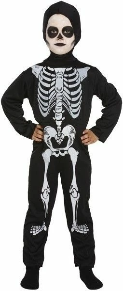 Voor als je een zak met botten bent! Het Skelet kostuum kind is een leuk kostuum voor Halloween of voor een griezelfeestje! Skelletten kostuums zijn een populaire keuze voor Halloween-kostuums. Ze worden vaak gebruikt om een spookachtige, angstaanjagende look te creëren. Skelletten kostuums kunnen worden gekocht in een verscheidenheid van stijlen, maten en kleuren. Sommige kostuums zijn gemaakt van zacht materiaal, zodat ze comfortabel zijn om te dragen, terwijl andere gemaakt zijn van stoffen zoals vinyl of latex, die meer realistische resultaten bieden. Skelletten kostuums kunnen worden aangevuld met accessoires zoals een schedel-masker, een kap, handschoenen, make-up en andere accessoires. Heb je een spooktocht of toneelstuk waar jij graat mager verkleed moet, dan is dit Skelet kostuum kind echt perfect voor jou!