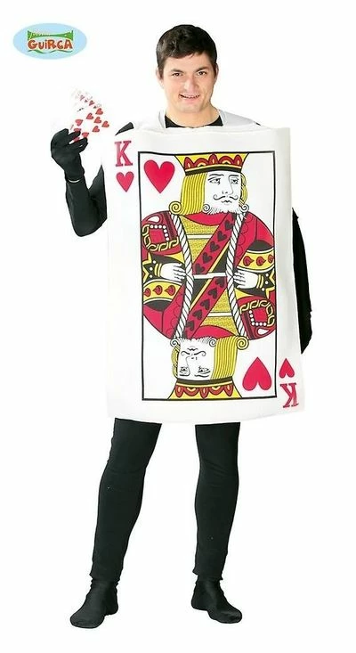 Met ons speelkaart kostuum houdt niemand zijn pokerface! Het speelkaart kostuum heeft geen mouwen en broekspijpen en is geschikt voor elke maat. Draag het speelkaart met een las vegas thema feestje als pokerspeler.