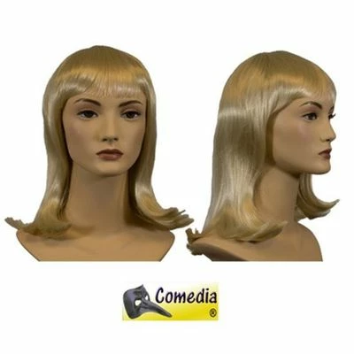 - De pruik valt tot op de schouders en krult naar buiten aan de onderkant