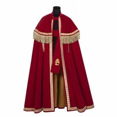 Deze TV-Sint katoenfluweel Stefan wijd is het model voor op het paard. De TV-Sint katoenfluweel Stefan wijd wordt geleverd met stola en is gemaakt van katoenfluweel. Dat maakt deze Sinterklaasmantel perfect voor jou! De mantel is voorzien van een mooie afwerking met gouden en rode details.