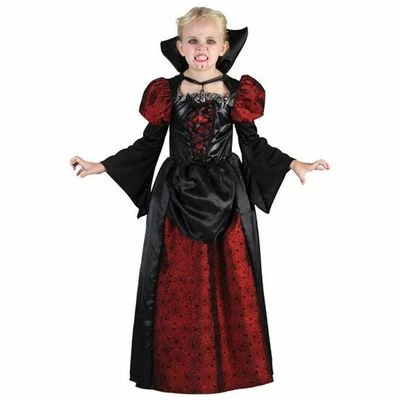 - Het Vampier Kostuum – meisje is verkrijgbaar voor kinderen met een leeftijd van 7-9 jaar (122-138 cm)