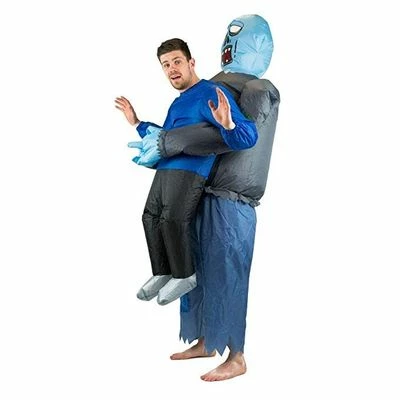 - Het Zombie carry me kostuum bestaat uit een opblaaskostuum.